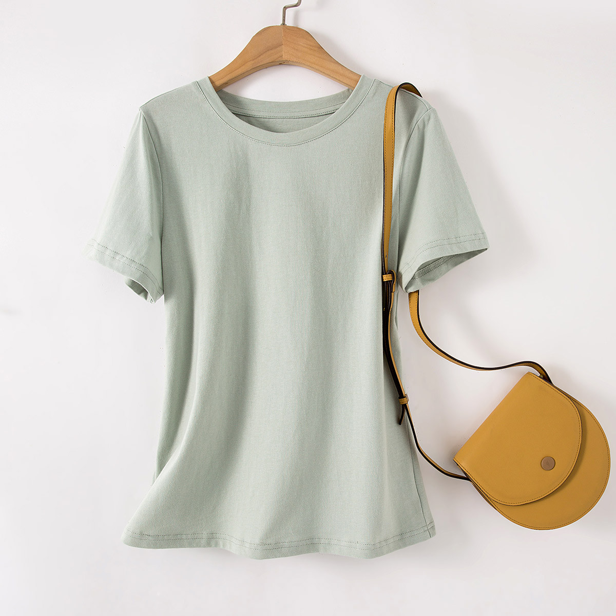 Summer Korean style basic versatile simple casual temperament slim solid color short-sleeved T-shirt for women